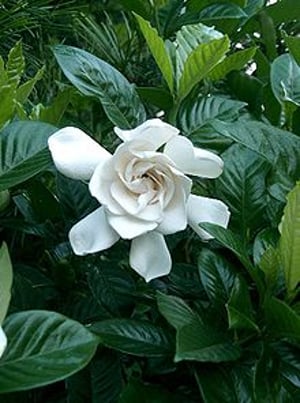 Gardenia jasminoides, (gardenia, cape jasmine, cape jessamine, danh-danh, or jasmin) is an evergreen flowering plant of the family Rubiaceae. It originated in Asia and is most commonly found growing wild in Vietnam, Southern China, Korea, Taiwan, Japan, Myanmar, and India. With its shiny green leaves and heavily fragrant white summer flowers, it is widely used in gardens in warm temperate and subtropical climates, and as a houseplant in temperate regions. It has been in cultivation in China for at least a thousand years, and was introduced to English gardens in the mid 18th century. Many varieties have been bred for horticulture, with low growing, and large-and long-flowering forms.