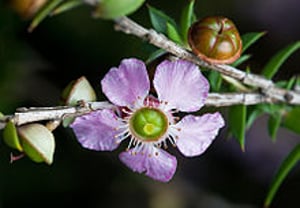 Leptospermum /ˌlɛptəˈspɜːrməm, -toʊ-/ is a genus of shrubs and small trees in the myrtle family Myrtaceae commonly known as tea trees, although this name is sometimes also used for some species of Melaleuca. Most species are endemic to Australia, with the greatest diversity in the south of the continent but some are native to other parts of the world, including New Zealand and Southeast Asia. Leptospermums all have five conspicuous petals and five groups of stamens which alternate with the petals. There is a single style in the centre of the flower and the fruit is a woody capsule. The first formal description of a leptospermum was published in 1776 by the German botanists Johann Reinhold Forster and his son Johann Georg Adam Forster, but an unambiguous definition of individual species in the genus was not achieved until 1979. Leptospermums grow in a wide range of habitats but are most commonly found in moist, low-nutrient soils. They have important uses in horticulture, in the production of honey and in floristry.