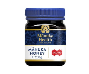 Manuka Health Manuka Honey 100+ 250g Premium New Zealand MGO™ 100+ Manuka Honey. Certified for natural methylglyoxal content (minimum 100mg/kg) - scientifically proven to be a key natural compound in Manuka honey MGO™ 100+ Manuka Honey has a delicious rich flavour and a smooth velvety texture. Not suitable for infants under 12 months of age. Product of New Zealand