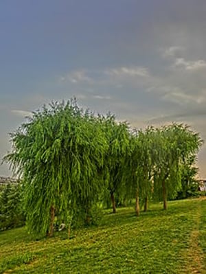 Salix babylonica (Babylon willow or weeping willow; Chinese: 垂柳) is a species of willow native to dry areas of northern China, but cultivated for millennia elsewhere in Asia, being traded along the Silk Road to southwest Asia and Europe.
