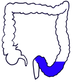The sigmoid colon (pelvic colon) is the part of the large intestine that is closest to the rectum and anus. It forms a loop that averages about 35-40 cm in length. The loop is typically shaped like a Greek letter sigma (ς) or Latin letter S (thus sigma + -oid). This part of the colon normally lies within the pelvis, but on account of its freedom of movement it is liable to be displaced into the abdominal cavity.