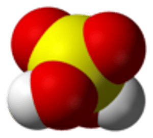Sulfuric acid (alternative spelling sulphuric acid) is a highly corrosive strong mineral acid with the molecular formula H2SO4 and molecular weight 98.079 g/mol. It is a pungent-ethereal, colorless to slightly yellow viscous liquid that is soluble in water at all concentrations. Sometimes, it is dyed dark brown during production to alert people to its hazards. The historical name of this acid is oil of vitriol.