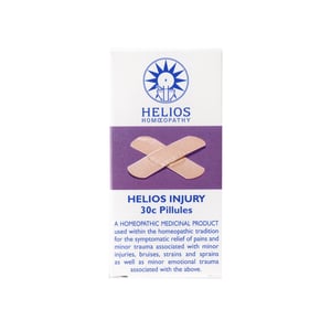 Helios Injury combines three homeopathic remedies, Arnica, Rhus tox and Ruta grav to form a homeopathic medicinal product used within the homeopathic tradition for the symptomatic relief of pains and minor trauma associated with minor injuries, bruises, strains and sprains as well as minor emotional trauma associated with the above.