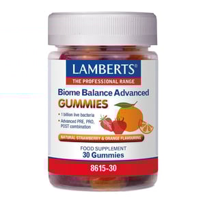 Lamberts ® Biome Balance Advanced gummies contain one billion live bacteria of a beneficial and well-researched strain, Bacillus subtilis, which is versatile and resilient. This makes it a valuable addition to a healthy lifestyle. Advanced tribiotic combination (pre,pro and postbiotic) with no added sugar or sweeteners.