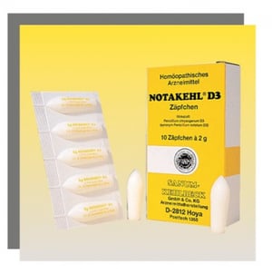 Unless otherwise prescribed: 1 x daily, insert 1 suppository rectally. Treatment of more than 8 weeks depends on the advice of the physician or health care professional. Side effects: Because of specific organic components of Notakehl®, theoretically, hypersensitivity may occur. In this case, discontinue medication and treat symptomatically. Contraindications: Do not administer in cases of known hypersensitivity to mold fungi (Penicillium chrysogenum). Adverse reactions: None known. Interactions with other remedies: Immunosuppressive drugs can influence the effectivity of Notakehl®. An interval of 4 weeks before and after treatment with orally administered live vaccines must be observed. Precautions: As with all medications and due to the variations of clinical studies, professional medical advice should be sought prior to recommending this product to patients with autoimmune diseases, to women during pregnancy or breastfeeding, as well as with children. Advice: This product contains lactose.