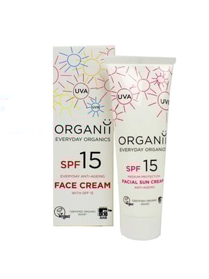 Protect delicate facial skin day in and out with our non-greasy Anti-Ageing Facial Moisturiser with SPF15. This mineral sun protection is formulated with non-nano Zinc Oxide and non-nano Titanium Dioxide which sit on top of the skin, reflecting the suns rays, and creating a protective barrier. Skin nourishing and moisturising extracts of organic Argan, Jojoba, Sunflower, Olive Fruit, Linseed, Rice Bran, and Karanja oils protect the skin while keeping skin soft and supple with added anti-ageing ingredients; carrot seed extract, flax seed oil, and hyaluronic acid to protect, firm, nourish, and hydrate the skin, all while protecting from UVA and UVB rays.