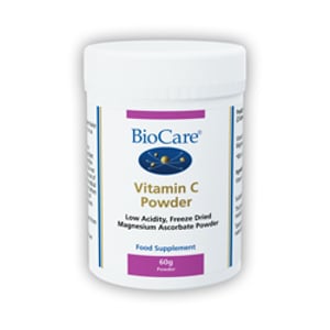Vitamin C powder contains magnesium ascorbate which is a low-acid form of vitamin C, produced by our unique solvent free æfreeze-driedÆ method; it is free from additives and excipients. This form of vitamin C is gentler on the stomach. Allergens: No Allergen Additional Information Provides a readily absorbable form of vitamin C and magnesium Buffered, low acid form of vitamin C to reduce stomach irritation Magnesium ascorbate does not leach minerals such as calcium and potassium from the body Suitable for intolerant individuals and those requiring a citrus-free vitamin C supplement Powder form makes it suitable for those who have difficulty swallowing capsules or tablets Pure freeze-dried powder, additive, solvent and excipient free Vitamin C contributes to maintain the normal function of the immune system during and after intense physical exercise Vitamin C contributes to normal collagen formation for the normal function of blood vessels, bones, cartilage, gums, skin and teeth Vitamin C and Magnesium contribute to normal energy-yielding metabolism Vitamin C contributes to normal functioning of the nervous and immune systems Vitamin C and Magnesium contributes to normal psychological function Vitamin C is an antioxidant that contributes to the protection of cells from oxidative stress Vitamin C and magnesium contribute to the reduction of tiredness and fatigue Vitamin C contributes to the regeneration of the reduced form of vitamin E Vitamin C increases iron absorption Magnesium contributes to normal functioning of the nervous system Magnesium contributes to normal muscle function