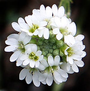 Berteroa incana is a species of flowering plant in the mustard family, Brassicaceae. Its common names include hoary alyssum, false hoary madwort, hoary berteroa, and hoary alison. It is native to Eurasia and it has been introduced to western Europe and North America. It is listed as an invasive noxious weed in some areas of United States.