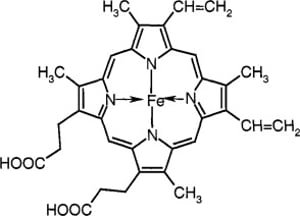A homoeopathic dilution of the iron-containing oxygen-transport metalloprotein in the red blood cells (erythrocytes) of almost all vertebrates