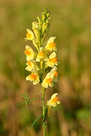 Linaria vulgaris (common toadflax, yellow toadflax, or butter-and-eggs) is a species of toadflax (Linaria), native to most of Europe, northern Asia, the United Kingdom, Spain, east to eastern Siberia, and western China. It has also been introduced and is now common in North America.
