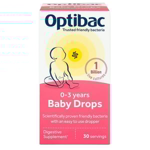 Optibac Baby Drops is a high-quality friendly bacteria liquid supplement containing the strain Bifidobacterium breve M-16V. It has been scientifically researched in thousands of newborns and babies and is proven to reach the gut alive.