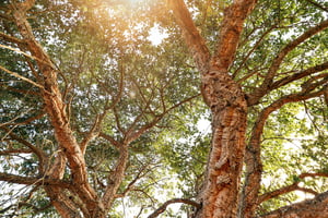 Quercus suber, commonly called the cork oak, is a medium-sized, evergreen oak tree in the section Quercus sect. Cerris. It is the primary source of cork for wine bottle stoppers and other uses, such as cork flooring and as the cores of cricket balls. It is native to southwest Europe and northwest Africa