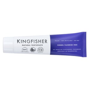 Kingfisher is one of the UKs leading all-natural toothpastes. It contains no artificial colourings, flavourings, sweeteners or preservatives. They use natural, 100% vegan-friendly ingredients like real fennel, real strawberries and real peppermint - resulting in a delicious taste with every flavour.