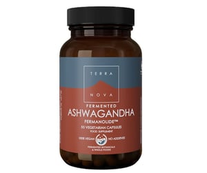 ONE VEGETARIAN CAPSULE TYPICALLY PROVIDES: Fermented Ashwagandha Root [Fermanolide™]* – (Withania somnifera) 150mg Typical assay: >3.2% withanolides Ashwagandha Root (Withania somnifera) – ORGANIC 100mg Vegetarian Capsule Shell (Hydroxypropyl methylcellulose) *Fermanolide™ is a registered trademark of Fermedics BV