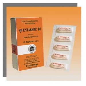 1 suppository contains: Medically active substance: 0.2 g Penicillium glabrum (lyophilised, sterile) 3X trituration. Quentakehl, extracted from the mould fungus P. glabrum, is not an antibiotic and produces no antibiotic substances. Other constituents: hard fat, lactose