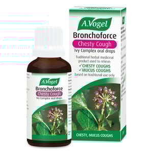 A Vogel Bronchoforce Ivy Complex oral drops, helps relieve chesty coughs, mucus build-up, and catarrh, providing natural, effective support for easier breathing.