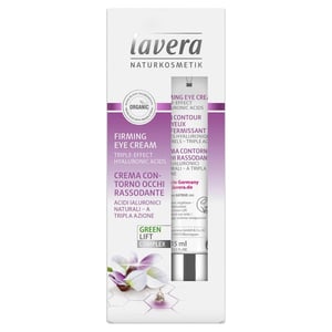 The Lavera Firming Eye Cream counteracts the ageing process of the skin in a natural way. This highly effective and gentle formula is proven to stimulate the skin's own collagen system and reduce wrinkles for a firmer, more youthful complexion. This natural and organic eye cream is enriched with bakuchiol - the natural and gentle alternative to retinol, combined with hyaluronic acid  provides a powerful active ingredient complex to hydrate the skin and effectively reduce wrinkles.