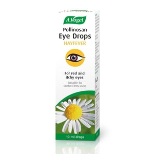 A.Vogel Pollinosan Hayfever Eye Drops contain hyaluronic acid (from vegetable source) and can be used for quick relief of red and itchy eyes due to hayfever.