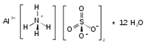 Ammonium aluminium sulfate, also known as ammonium alum or just alum, is a white crystalline double sulfate usually encountered as the dodecahydrate, formula (NH4)Al(SO4)2·12H2O. It is used in small amounts in a variety of niche applications. The dodecahydrate occurs naturally as the rare mineral tschermigite.