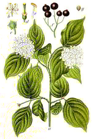 Cornus sanguinea, the common dogwood, is a species of dogwood native to most of Europe and western Asia, occurring north to southern England and southern Scandinavia, and east to the Caspian Sea. It is widely grown as an ornamental plant.