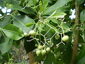 Duboisia myoporoides, or Corkwood, is a shrub or tree native to high-rainfall areas on the margins of rainforest in eastern Australia. It has a thick and corky bark. The leaves are obovate to elliptic in shape, 4–15 cm long and 1–4 cm wide. The small white flowers are produced in clusters. This is followed by globose purple-black berries (not edible).