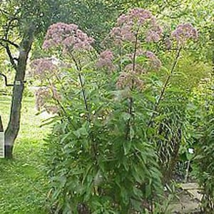 Botanical Name: Eupatorium purpureum Synonym: Eutrochium purpureum Family: Compositae English: Trumpet weed, Gravel Root, Joe-pye Weed German: Purpurrother Fasserhanf Part used.: Root