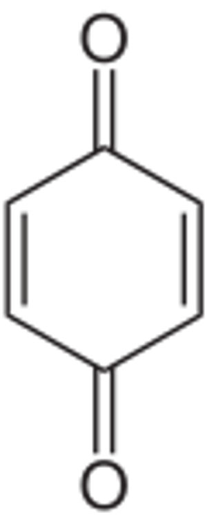 1,4-Benzoquinone, commonly known as para-quinone, is a chemical compound with the formula C6H4O2. In a pure state, it forms bright-yellow crystals with a characteristic irritating odor, resembling that of chlorine, bleach, and hot plastic. This six-membered ring compound is the oxidized derivative of 1,4-hydroquinone. The molecule is multifunctional: it exhibits properties of a ketone, forming an oxime; an oxidant, forming the dihydroxy derivative; and an alkene, undergoing addition reactions, especially those typical for α,β-unsaturated ketones. 1,4-Benzoquinone is sensitive toward both strong mineral acids and alkali, which cause condensation and decomposition of the compound.