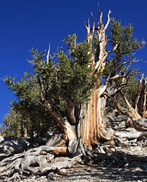 Pinus longaeva (commonly referred to as the Great Basin bristlecone pine, intermountain bristlecone pine, or western bristlecone pine) is a long-living species of bristlecone pine tree found in the higher mountains of California, Nevada, and Utah. One member of this species, at 5066 years old, is the oldest known living non-clonal organism on Earth. In 1987, the bristlecone pine was designated one of Nevada's state trees.